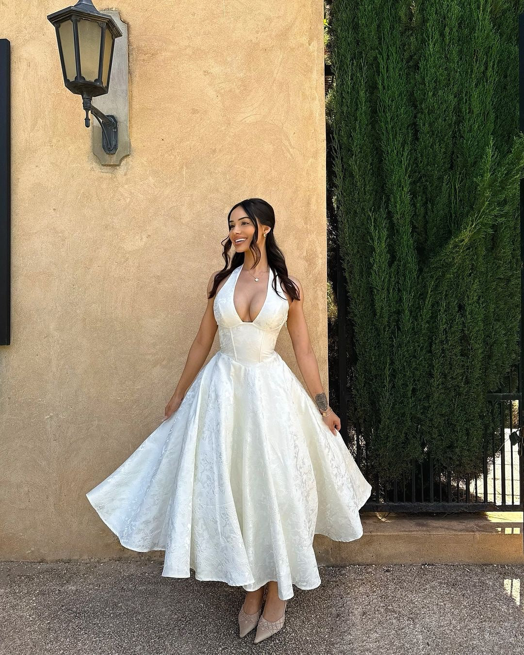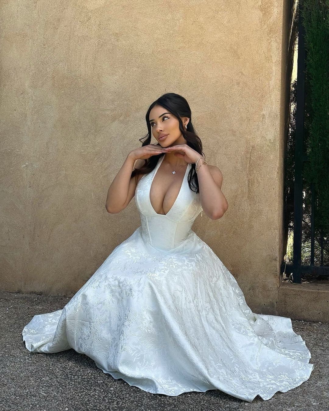 ‘MILLA’ es un sueño con acabado satinado y textura brocada. El escote halter profundo enmarca el busto, mientras la cintura estructurada realza tu silueta antes de abrir paso a una falda con volumen dramático y caída elegante.